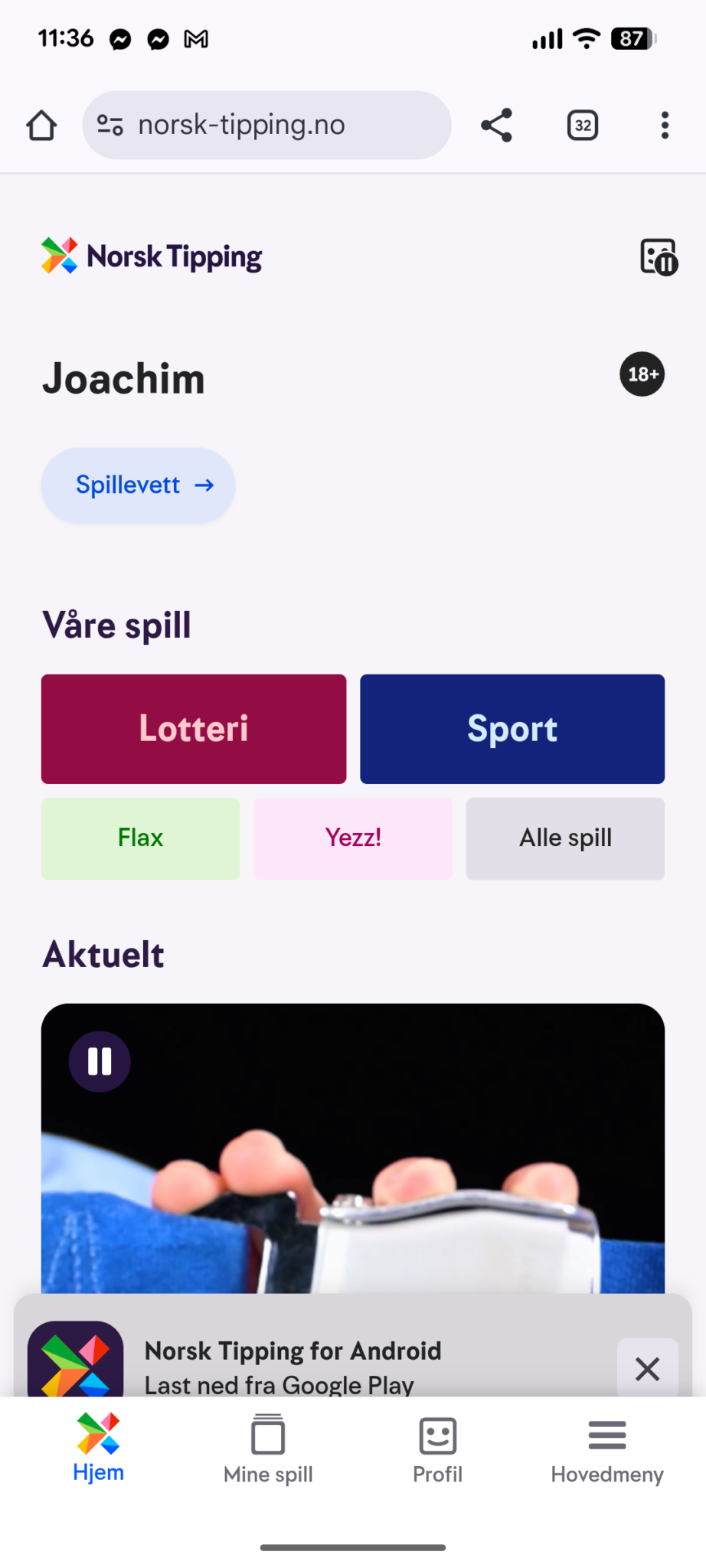 Logg deg inn på norsk-tipping.no